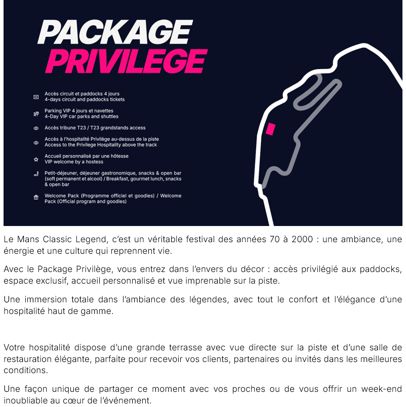 - Accès au Musée des 24 Heures du Mans pendant le week-end de l'événement