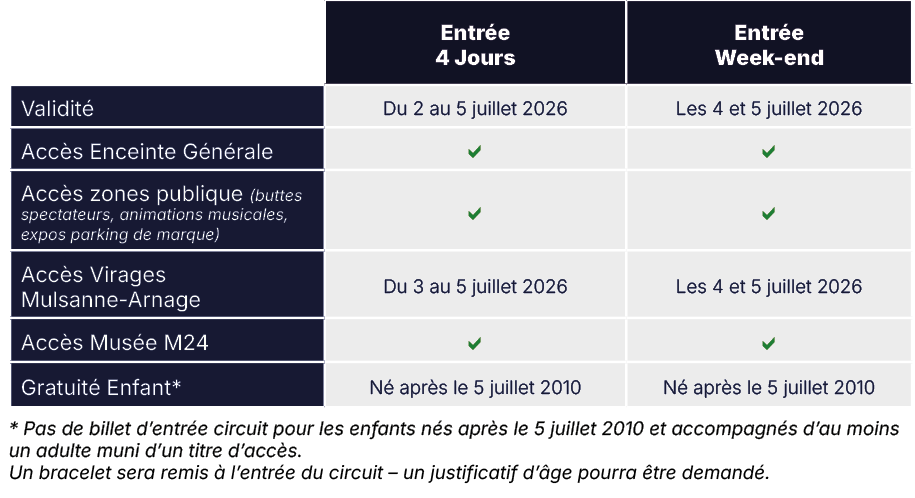 Entrée 4 Jours ou Week-end + Tribune