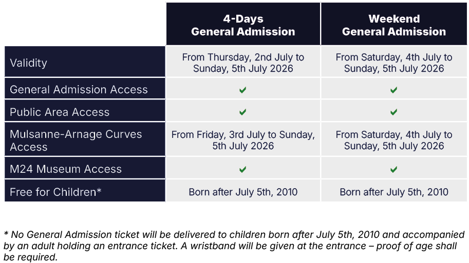 Package definition [4-Day or Weekend General Admission + Grandstand + Paddocks] - Service Billetterie